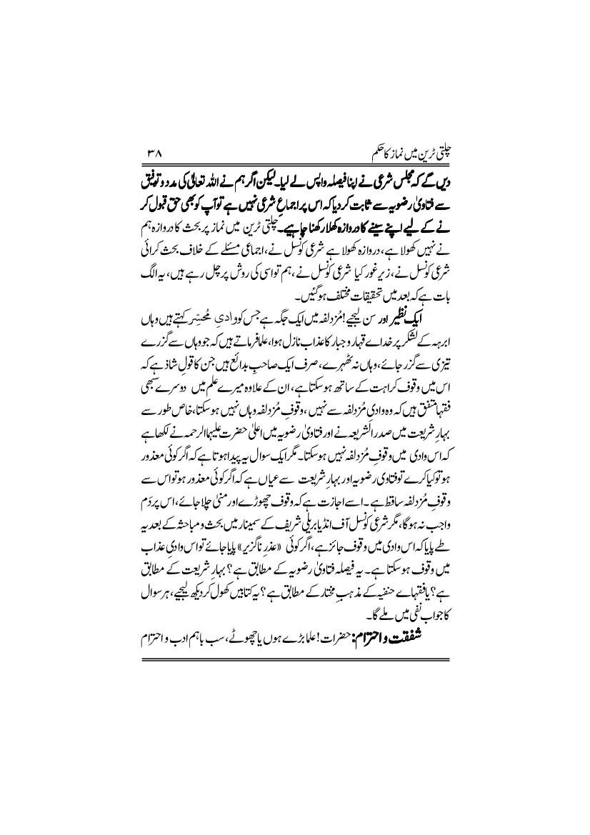 Chalti Tarin me namaz ka hukm