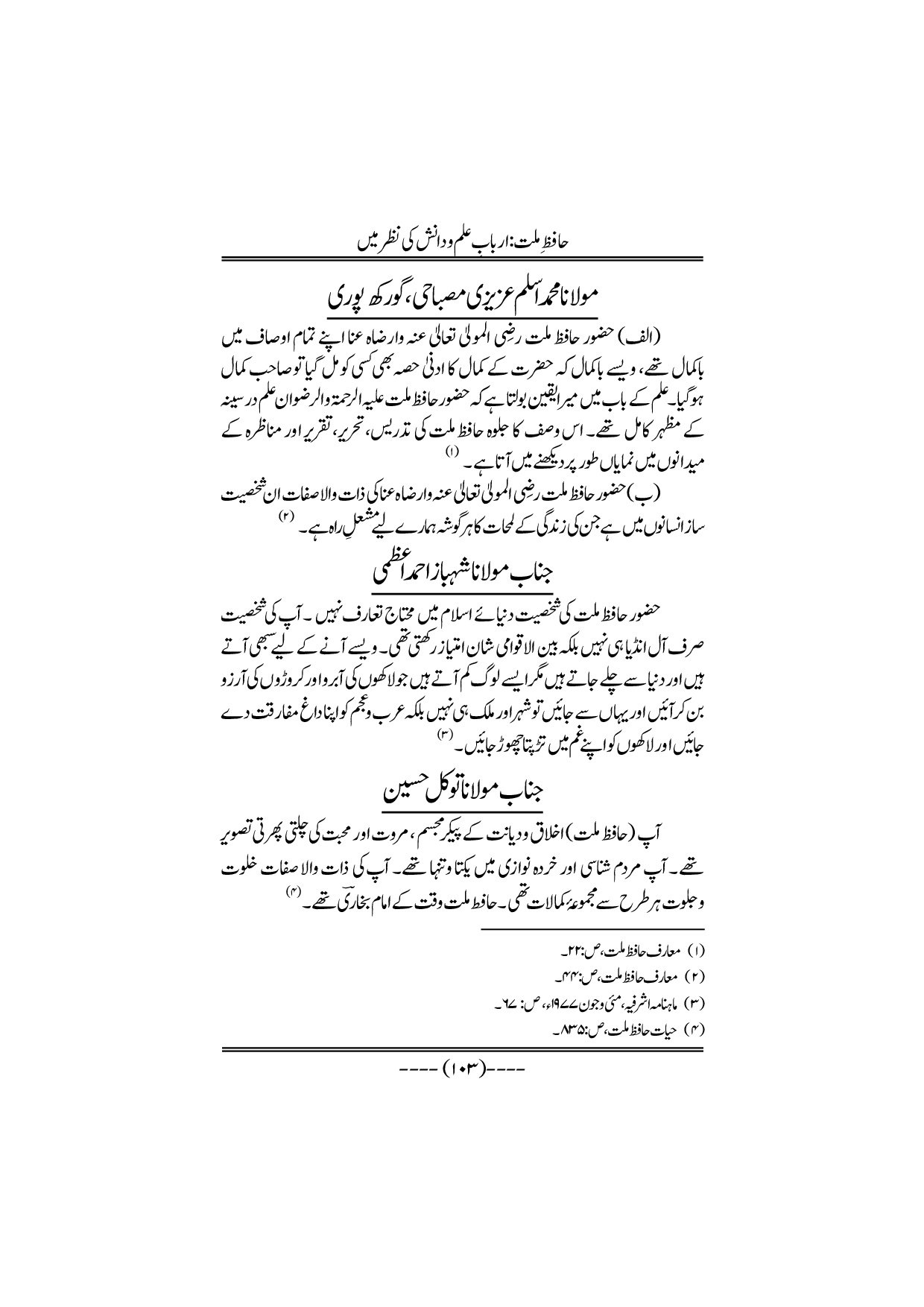 Hafiz-e-Millat Arbabe elmo danish ki nazar me
