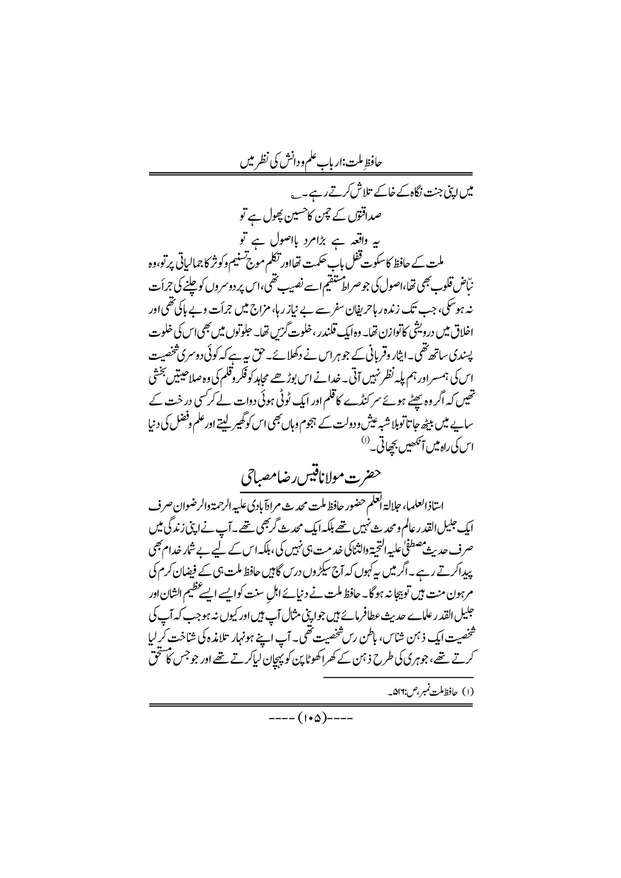 Hafiz-e-Millat Arbabe elmo danish ki nazar me