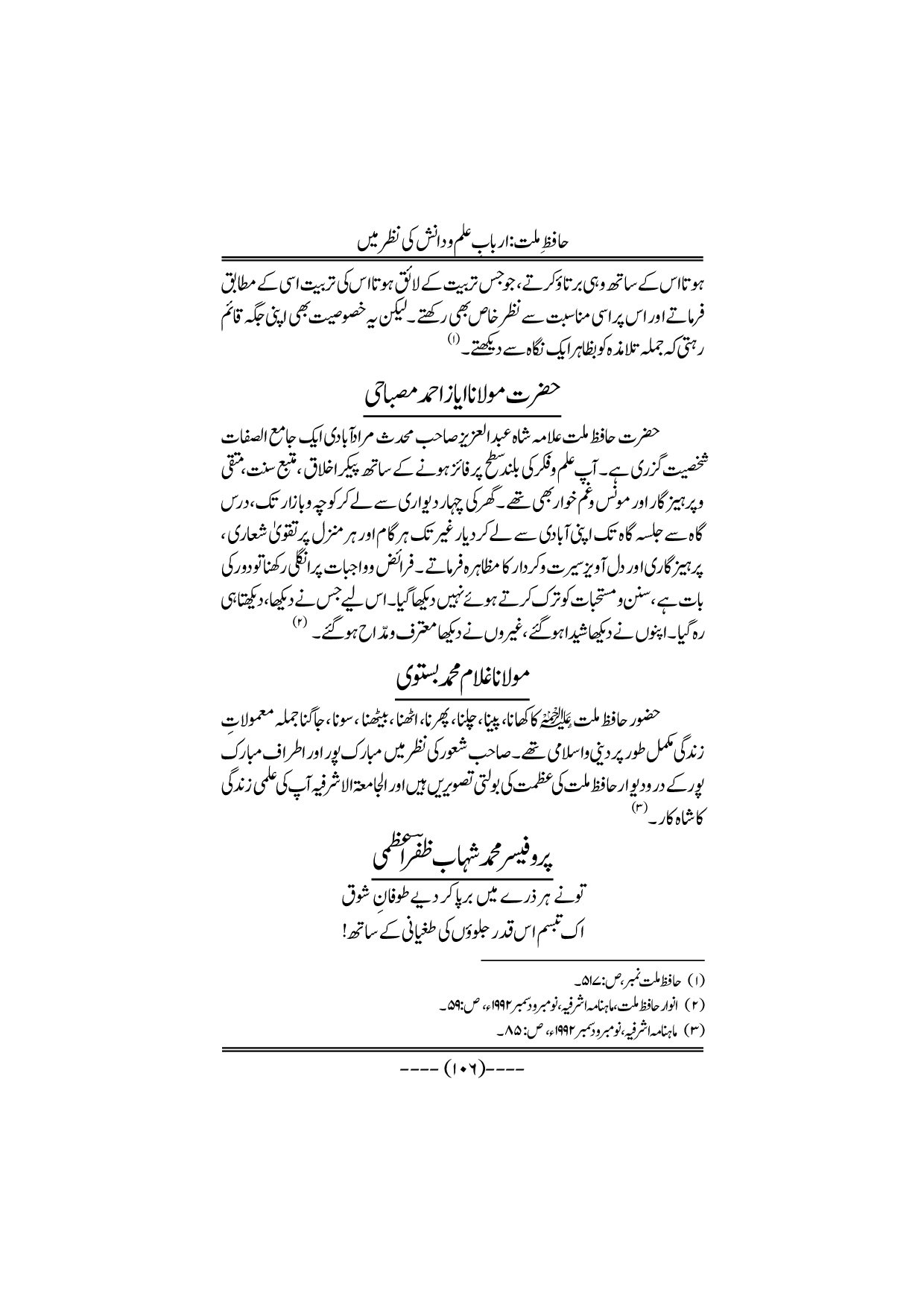 Hafiz-e-Millat Arbabe elmo danish ki nazar me