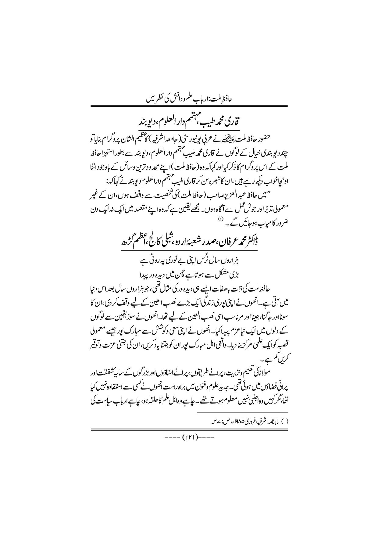 Hafiz-e-Millat Arbabe elmo danish ki nazar me