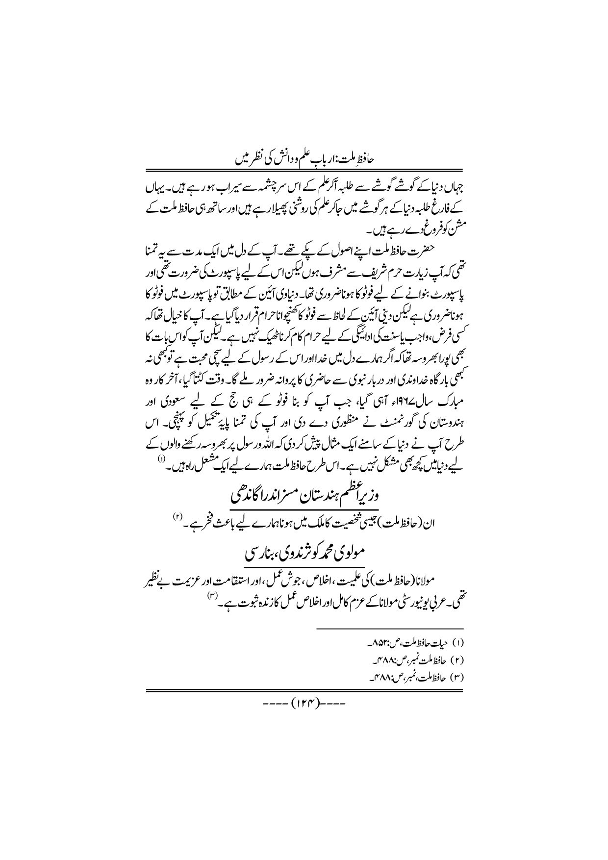 Hafiz-e-Millat Arbabe elmo danish ki nazar me