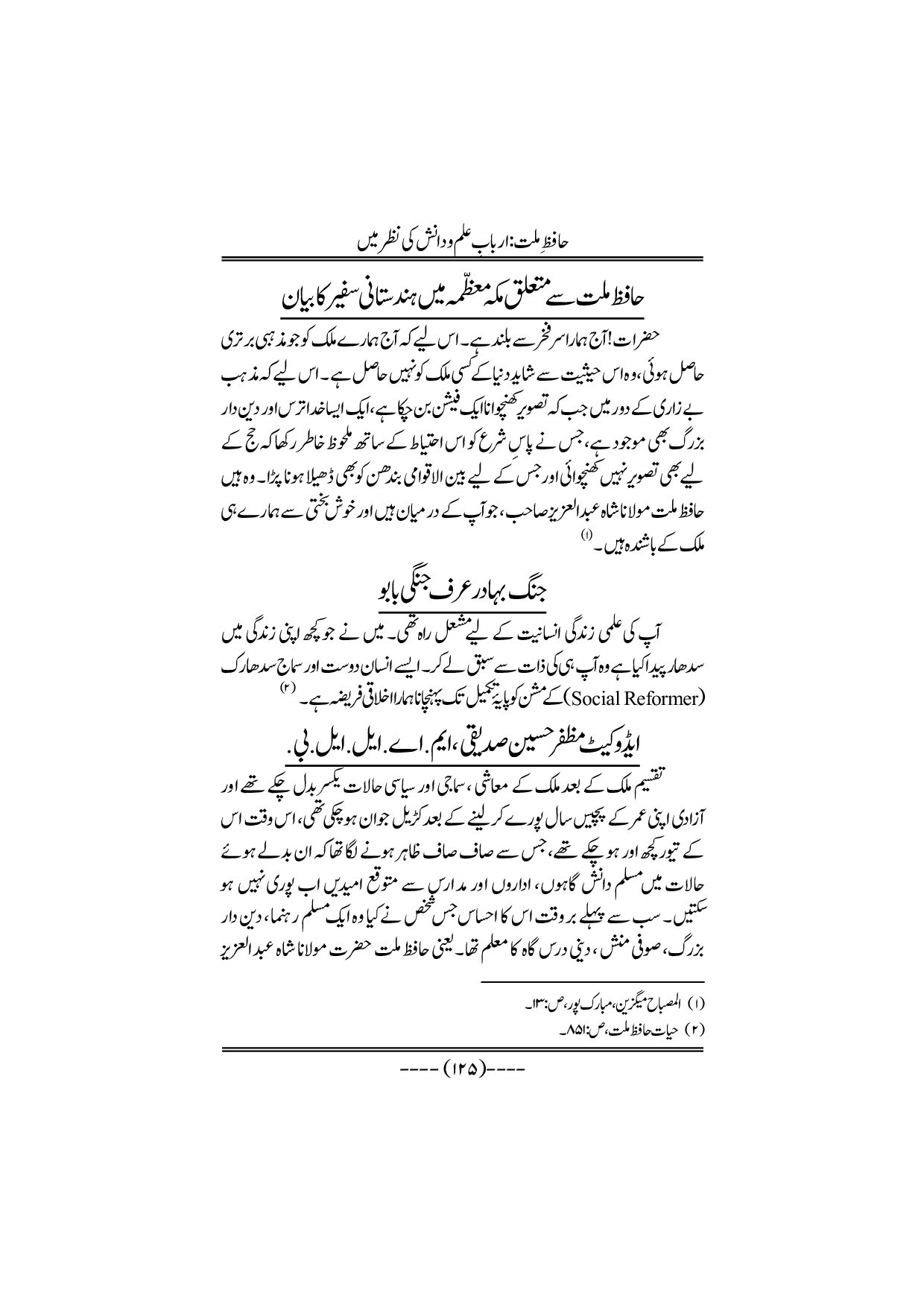 Hafiz-e-Millat Arbabe elmo danish ki nazar me