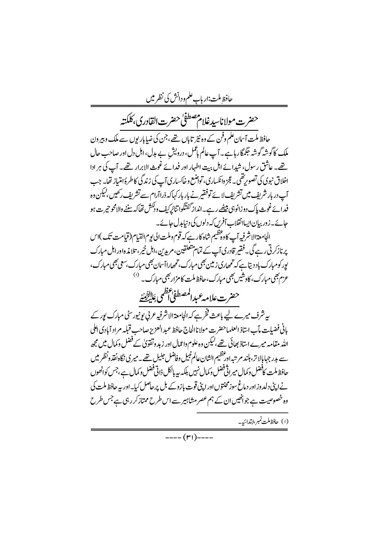 Hafiz-e-Millat Arbabe elmo danish ki nazar me