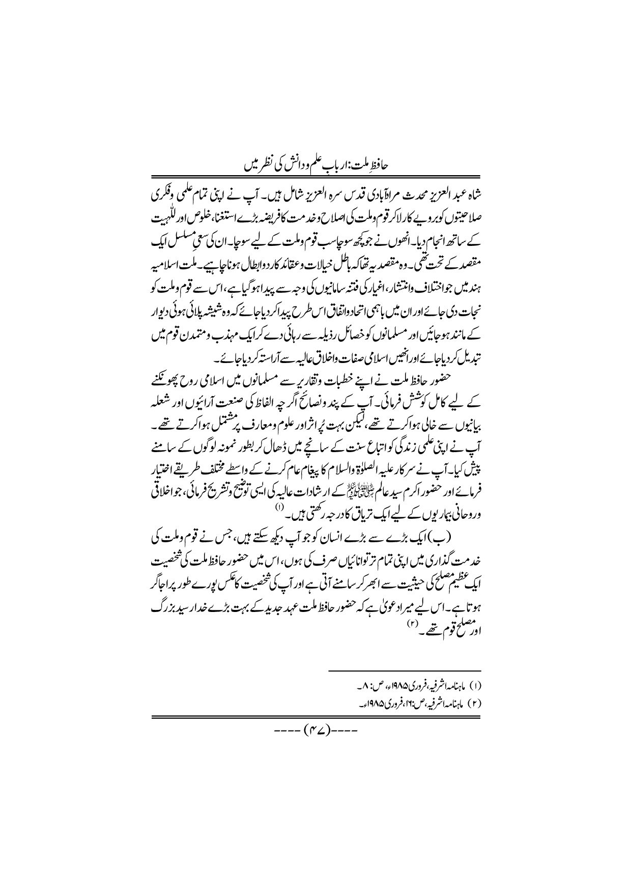 Hafiz-e-Millat Arbabe elmo danish ki nazar me