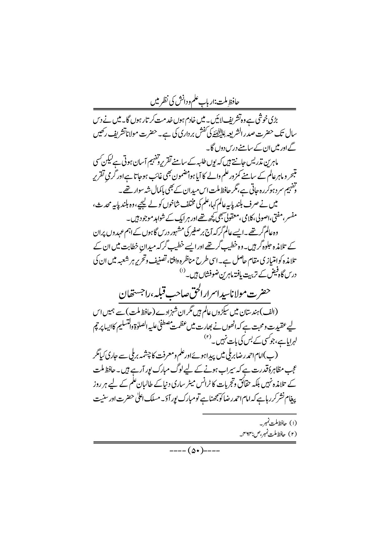Hafiz-e-Millat Arbabe elmo danish ki nazar me