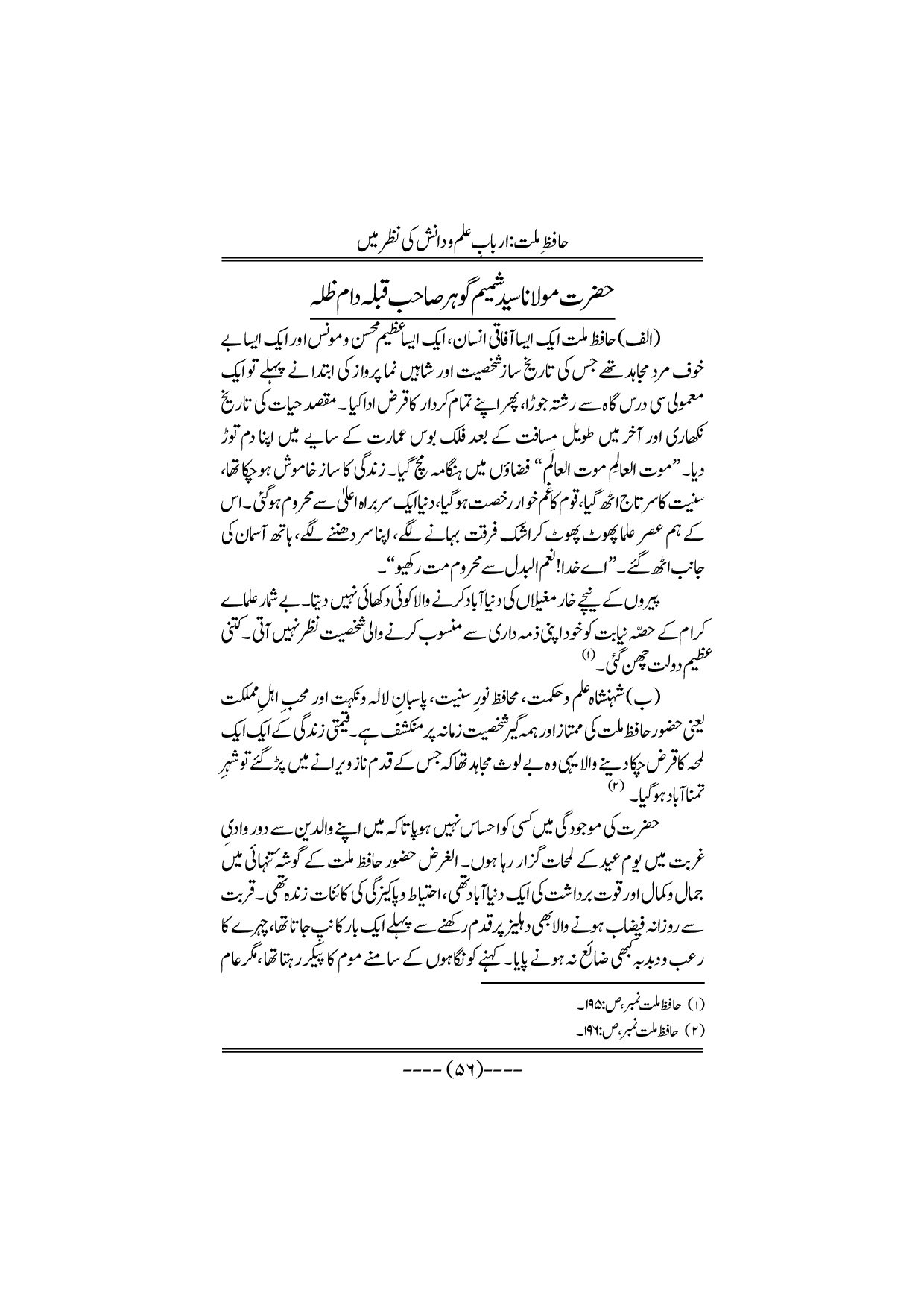 Hafiz-e-Millat Arbabe elmo danish ki nazar me