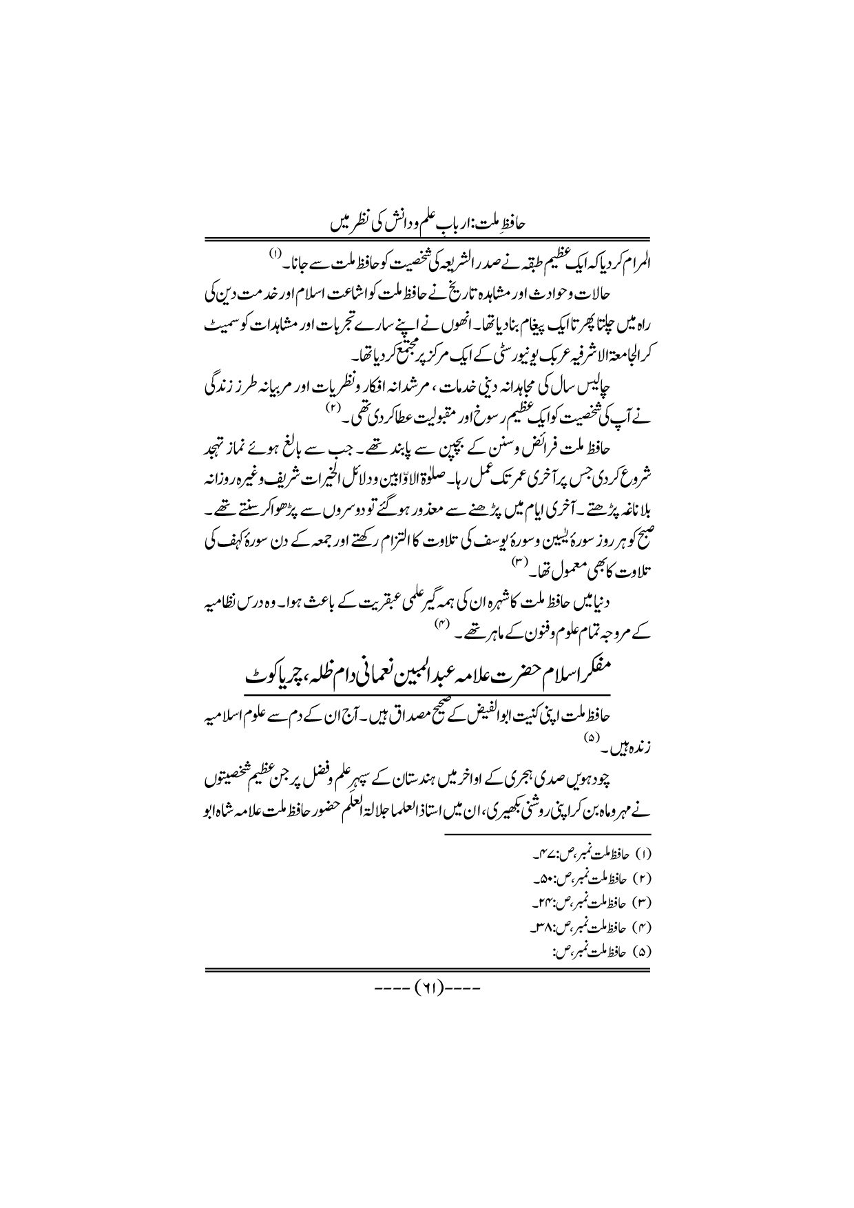 Hafiz-e-Millat Arbabe elmo danish ki nazar me