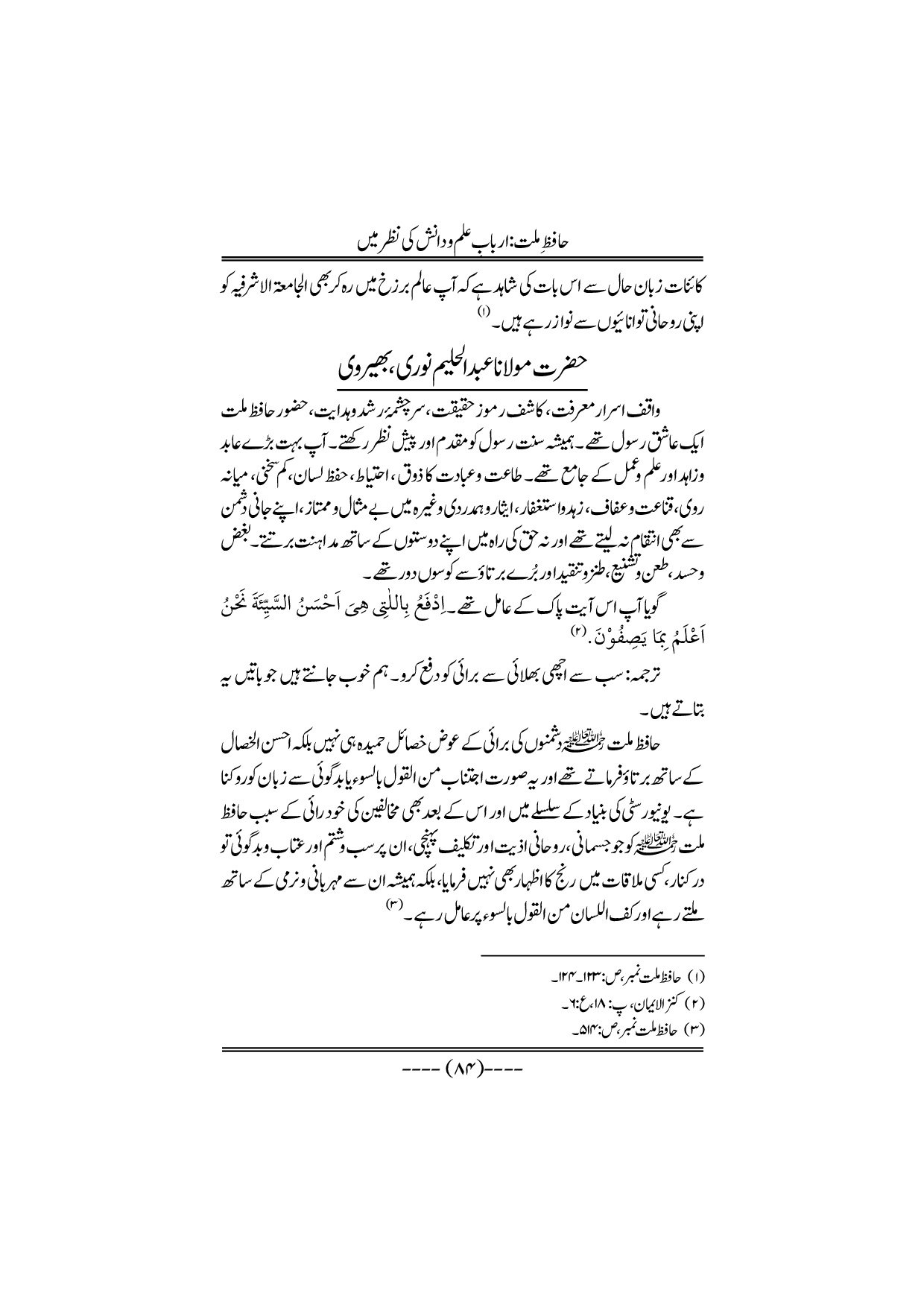 Hafiz-e-Millat Arbabe elmo danish ki nazar me
