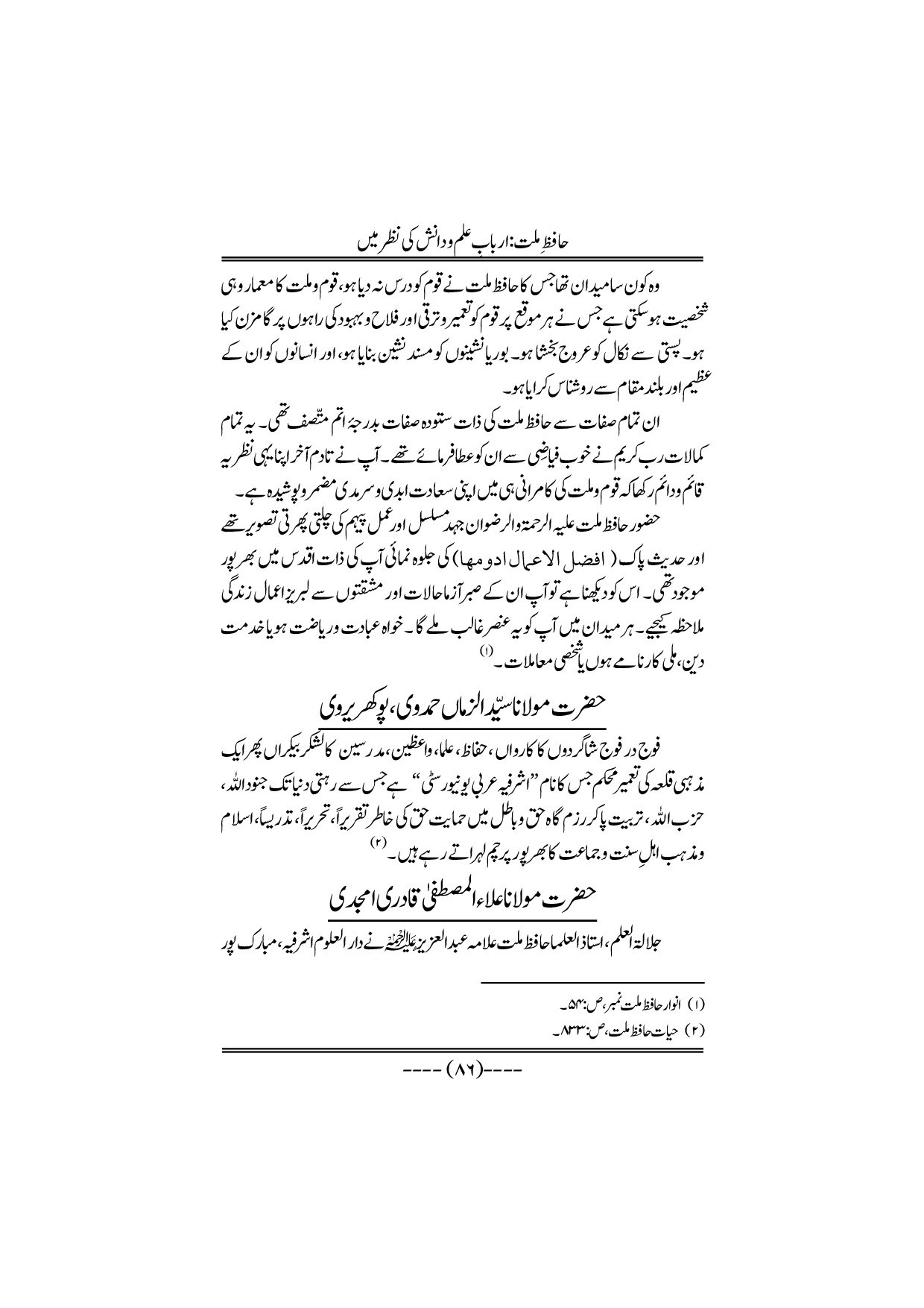 Hafiz-e-Millat Arbabe elmo danish ki nazar me