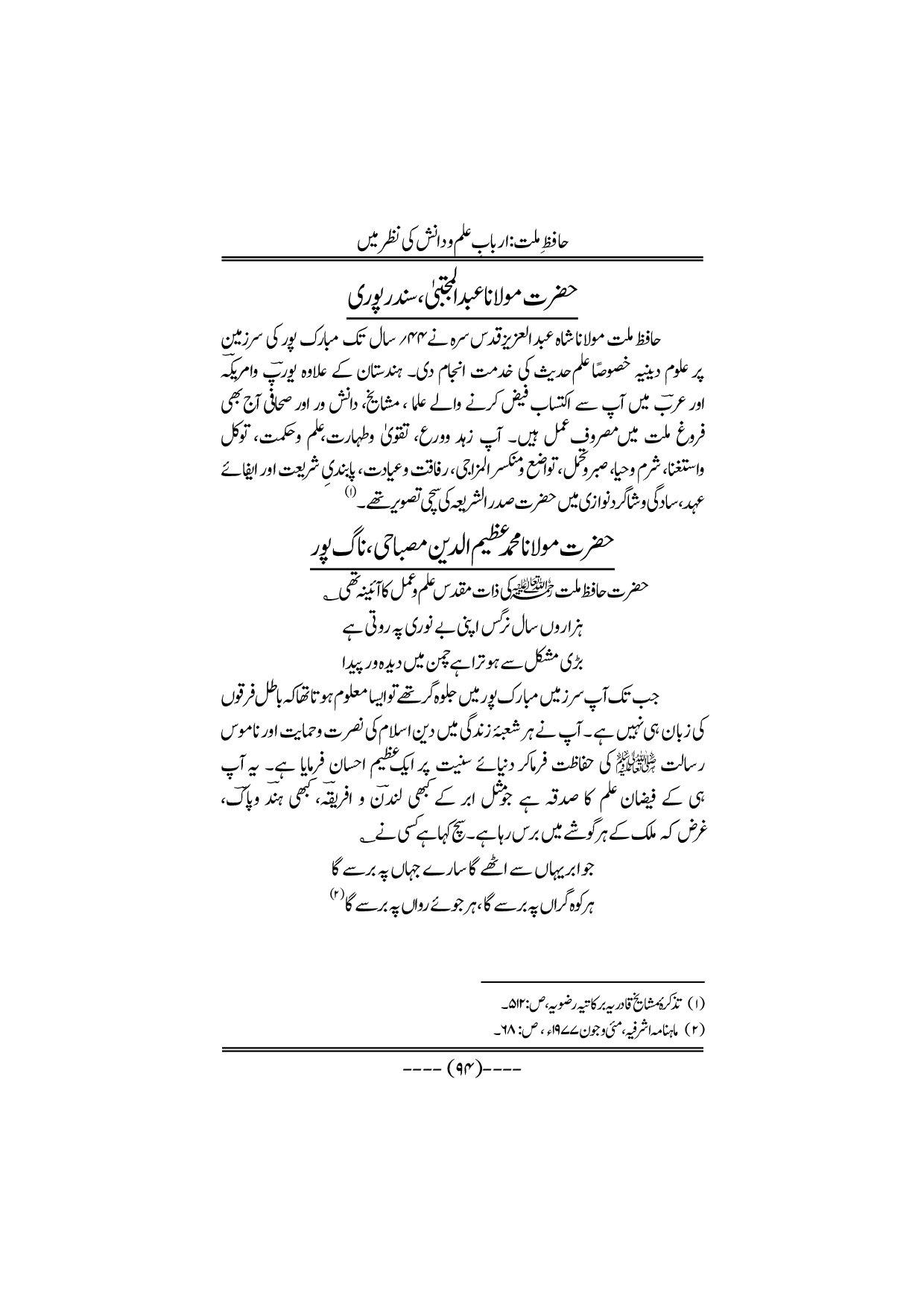 Hafiz-e-Millat Arbabe elmo danish ki nazar me