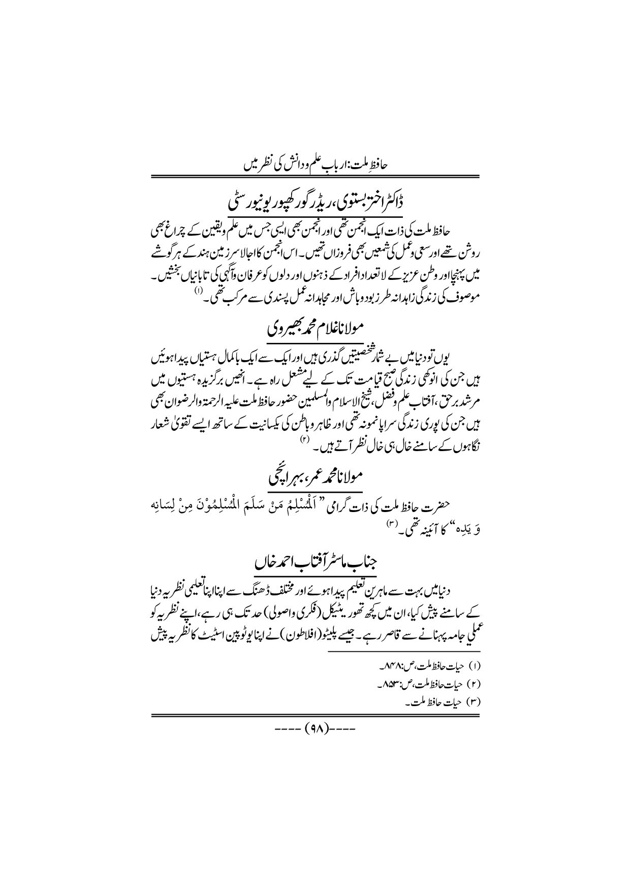 Hafiz-e-Millat Arbabe elmo danish ki nazar me