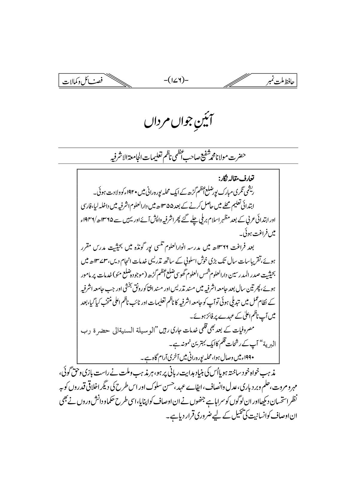 Hafiz-e-Millat Number