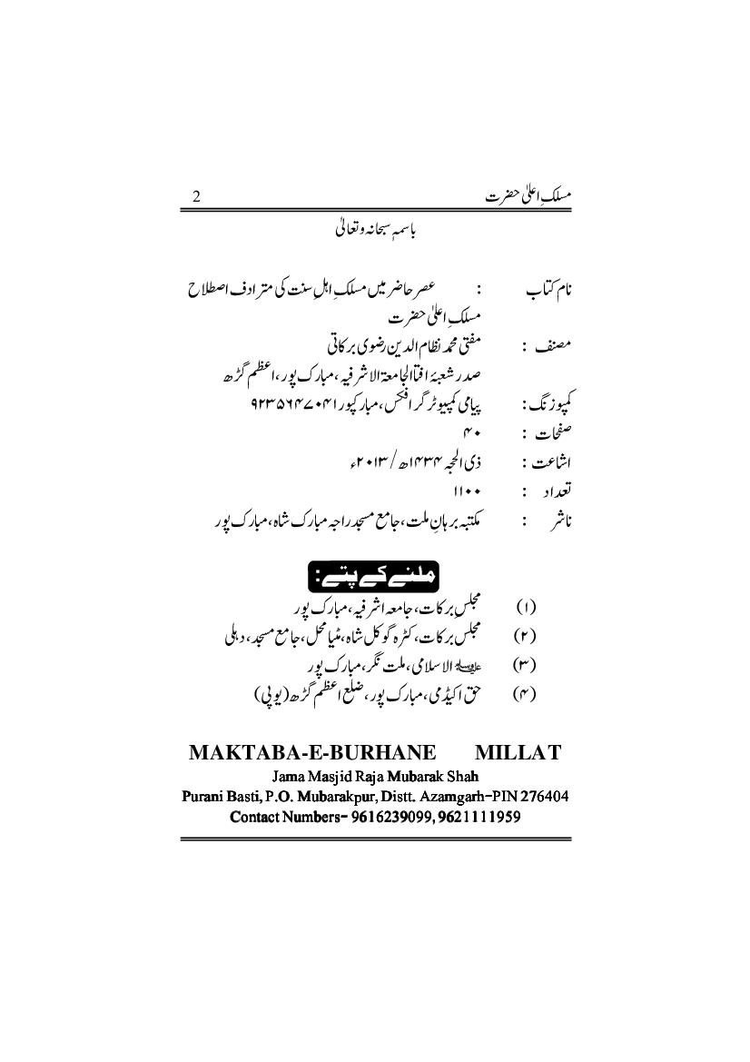Maslake Alahazrat